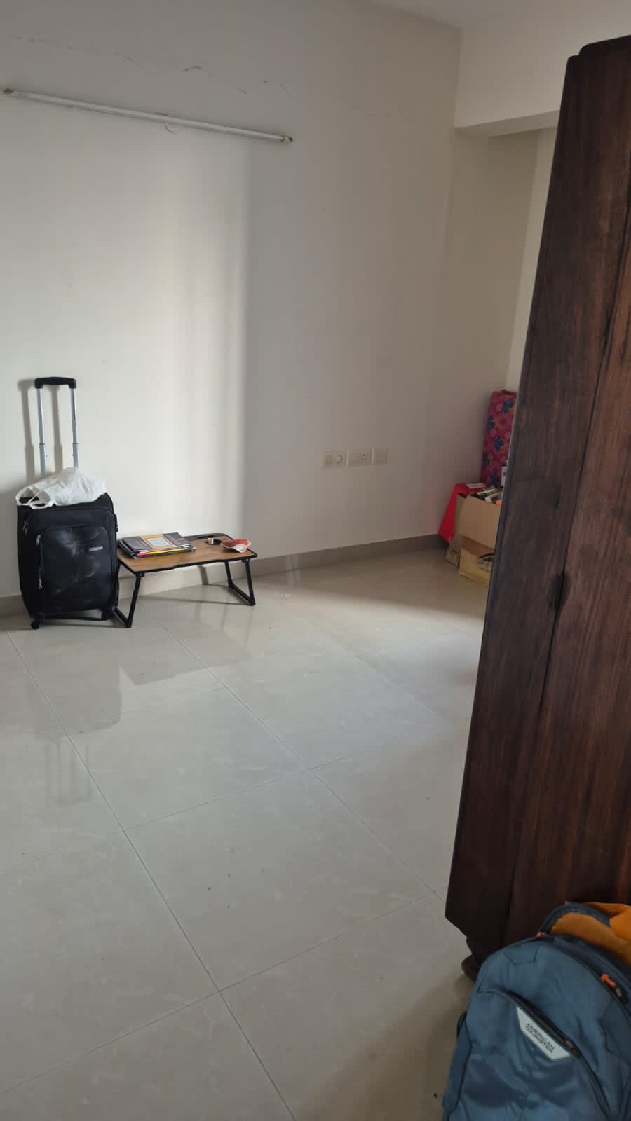 Semi-furnished setup includes wardrobes, modular kitchen cabinets, and basic fittings.