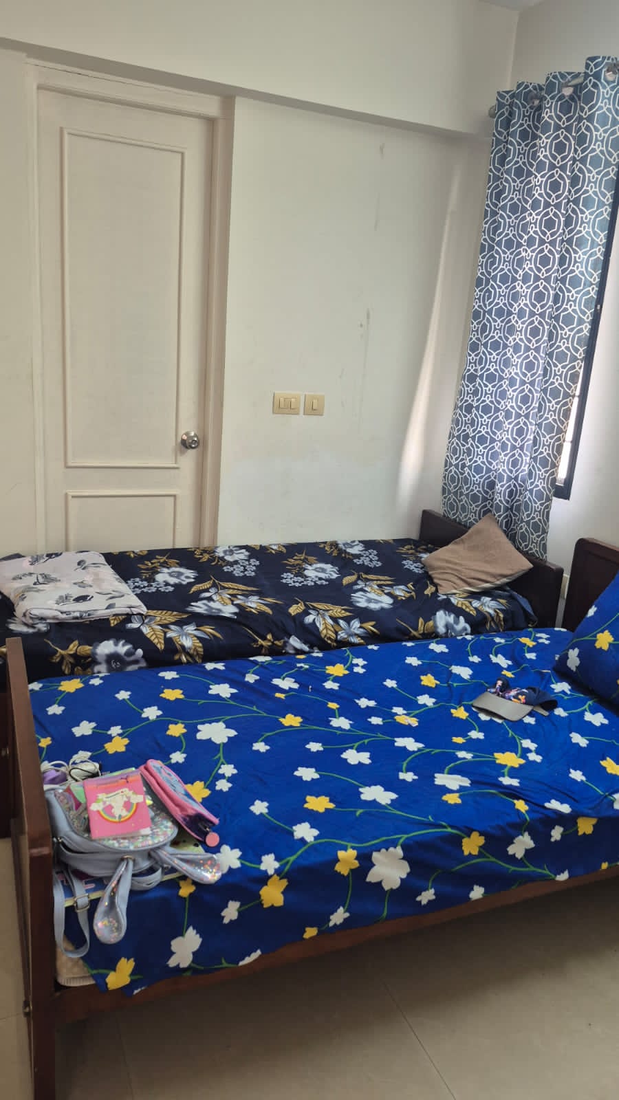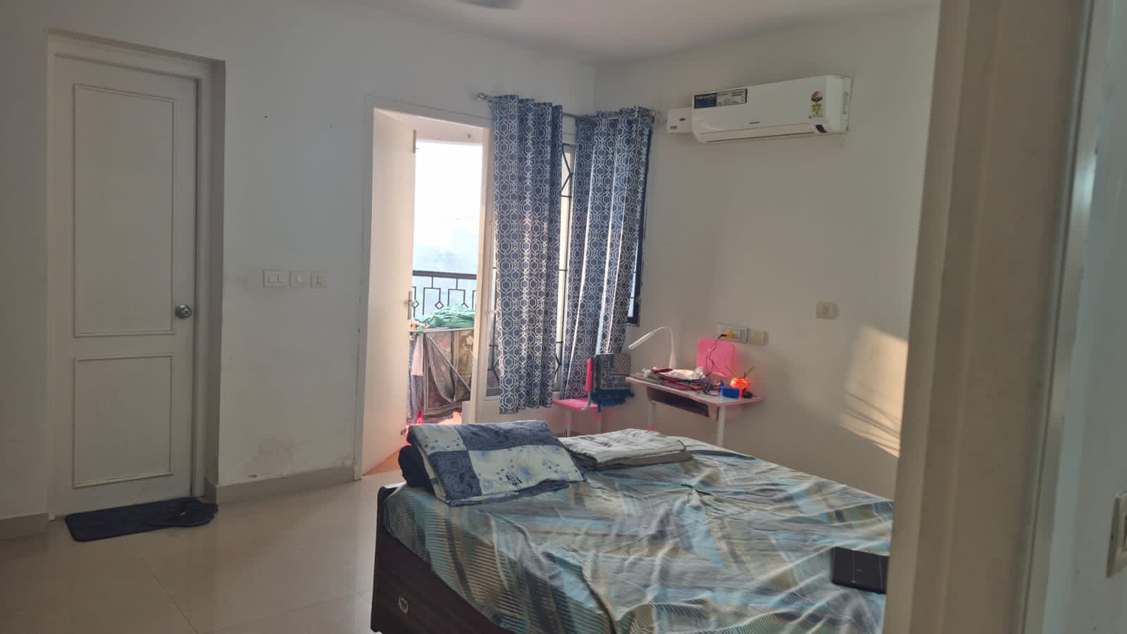 The flat features three well-ventilated bedrooms with ample natural light.