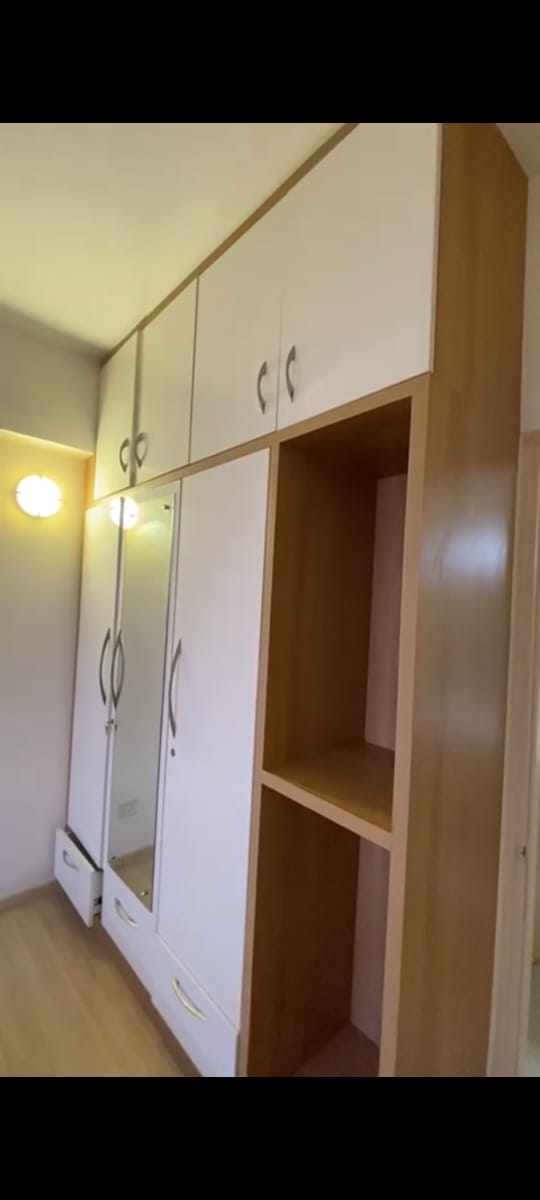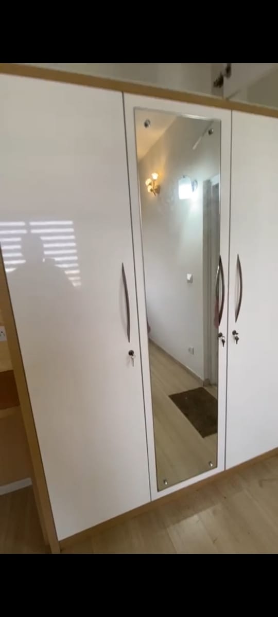 Flat is tastefully furnished with beds, wardrobes, sofa, dining set, and appliances.