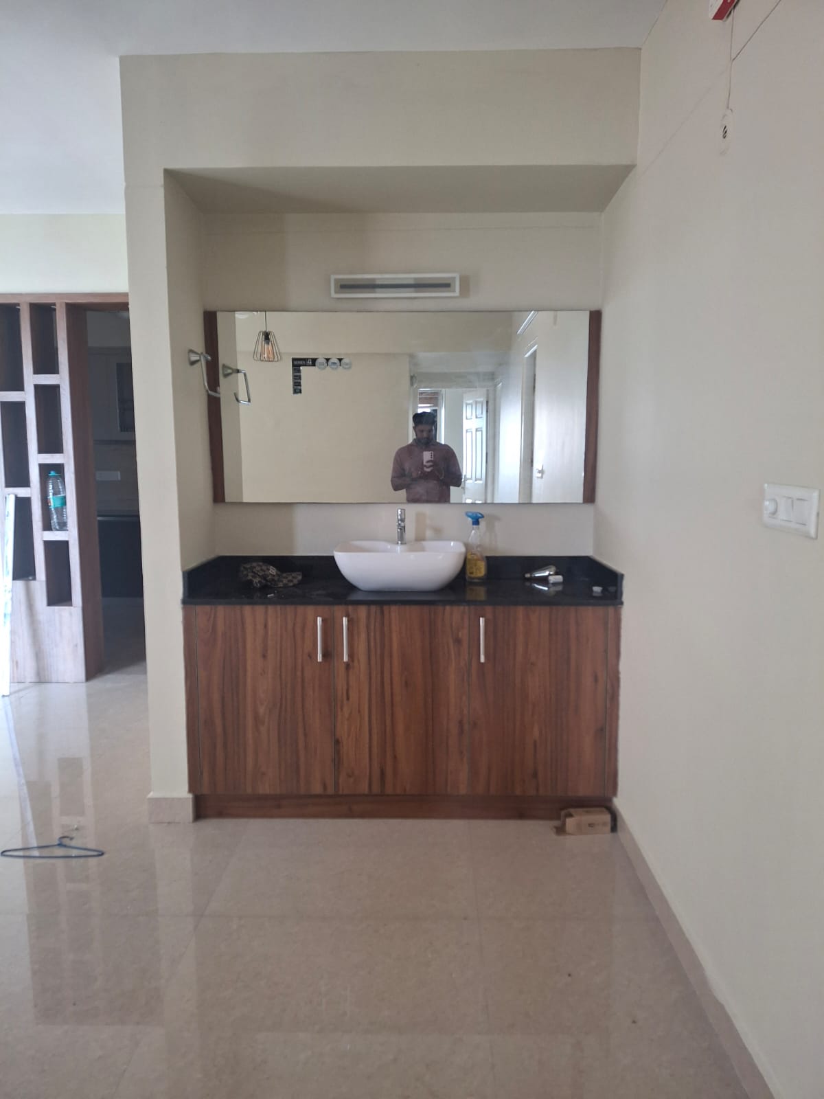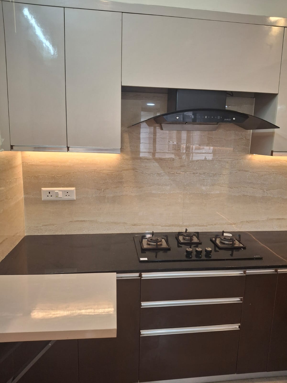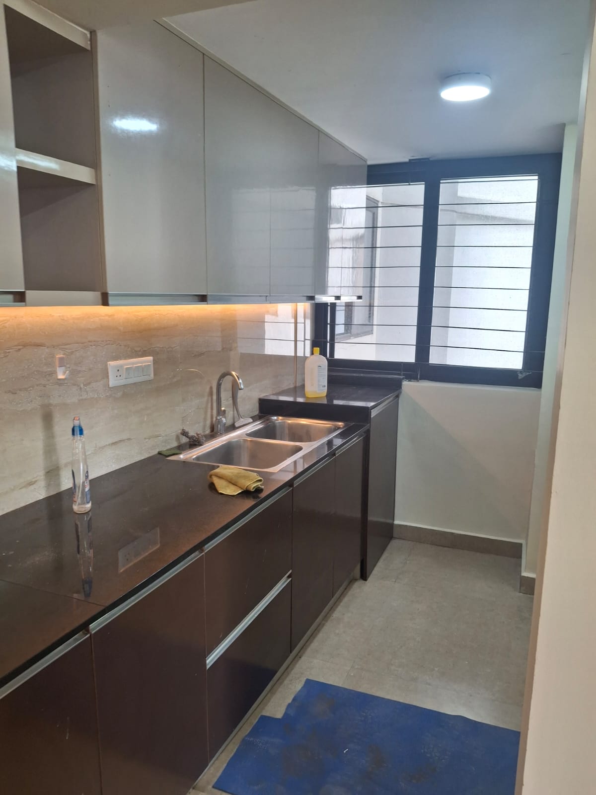 Semi-furnished with wardrobes, modular kitchen, and basic fittings